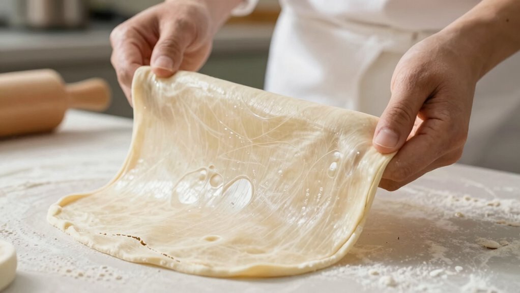 - It stretches thin without tearing, indicating good gluten structure.