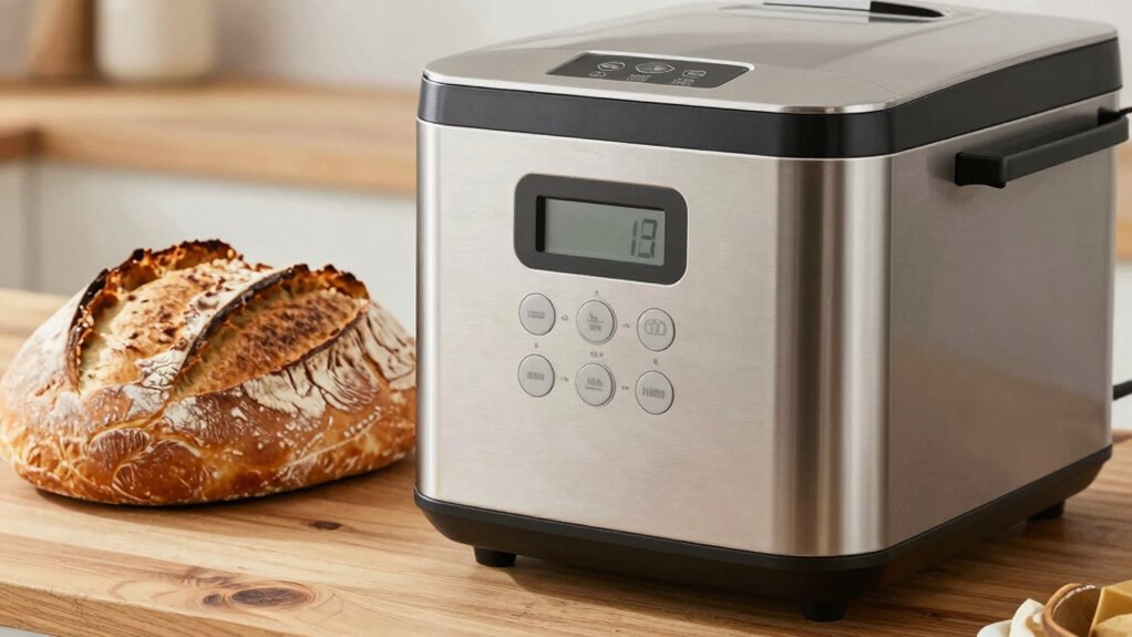 You’ll find that most bread makers under $300 offer a loaf capacity ranging from 1 to 2 pounds, with some models handling up to 2.5 pounds. This means you can choose from various bread size options, like small, medium, or large loaves. Check the specifications for the minimum and maximum loaf capacity to make certain it meets your baking needs, especially if you prefer customizing bread sizes regularly.