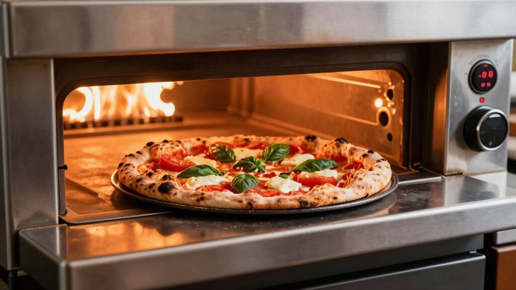 If you want to enjoy authentic Neapolitan-style pizza at home, a countertop pizza oven can be a game-changer. To get that perfect crust and flavor, you need to focus on key factors like dough fermentation and ingredient quality. The dough fermentation process is vital because it develops the gluten structure, enhances flavor, and creates the ideal texture for your pizza. When you give your dough ample time to ferment—usually at least 24 hours—you allow natural fermentation to occur, which results in a more complex taste and a lighter, airier crust. Using high-quality ingredients in your dough, such as type 00 flour, fresh yeast, and pure water, will make a noticeable difference. These ingredients form the foundation of authentic Neapolitan pizza, and their quality directly impacts the final result.