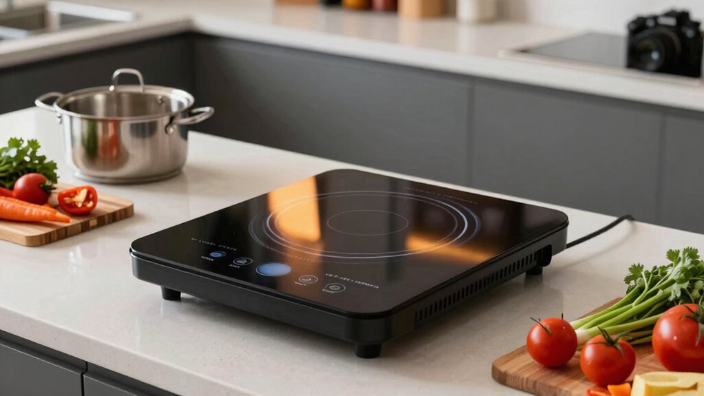 Portable induction cooktops are generally safe for children when you prioritize child safety and electrical safety. They stay cool to the touch, reducing burn risks, and have safety features like auto shut-off. Always supervise children around the cooktop, keep cords out of reach, and guarantee the device is properly maintained. With these precautions, you can enjoy the convenience while keeping your family safe.