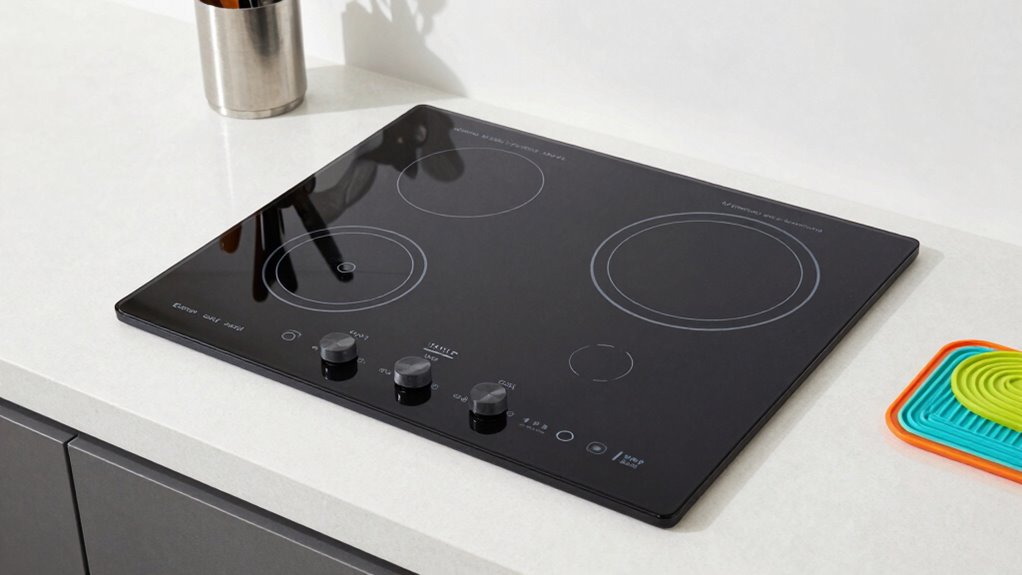 Next, consider the placement of your induction cooktop relative to other appliances. For example, avoid placing it too close to your refrigerator or microwave, as these can generate heat or electromagnetic interference that might disrupt your cooktop’s performance. Maintaining a safe distance helps prevent overheating and ensures that your appliances operate smoothly. Also, ensure there’s enough space behind the cooktop for proper ventilation. Good airflow prevents overheating, prolongs the lifespan of your appliance, and keeps your kitchen safer overall. Proper ventilation is especially important when using portable appliances in small spaces, as it helps dissipate heat effectively.
