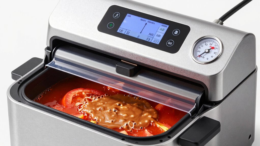Sealing soups and sauces with a chamber vacuum sealer offers a reliable way to preserve flavors and extend shelf life. To get the best results, mastering vacuum sealing techniques and understanding the ideal sealer settings are essential. When sealing liquids like soups and sauces, you need to adjust your approach compared to solid foods, as liquids tend to interfere with the sealing process if not handled correctly. The key is to minimize liquid loss and guarantee a tight, secure seal that prevents air from entering and spoiling your food.