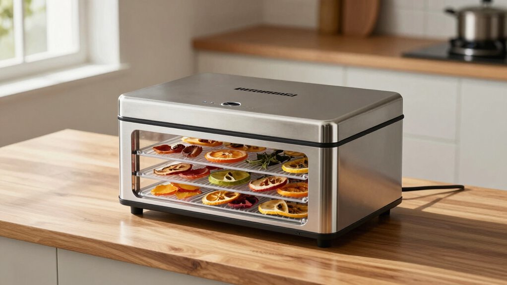 Before settling on a stainless steel food dehydrator under $400, take a moment to reflect on these key specs. Sometimes, a modest investment can whisper promises of better performance, but subtle nuances can also hint at hidden shortcomings. By paying attention to these details, you’ll gently steer yourself toward a choice that nurtures your culinary pursuits without regret. After all, the best results often come from considering the finer points before making your move.