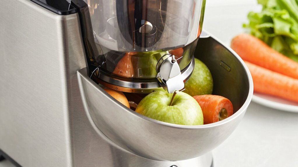 A wide feed chute on a centrifugal juicer allows you to quickly and easily insert larger pieces of fruits and vegetables without pre-cutting. This feature saves you time and effort, especially when you’re in a hurry or dealing with bulk produce. Instead of chopping everything into small bits, you can toss in whole apples, large carrots, or chunks of pineapple, making the juicing process more convenient. This efficiency appeals to busy mornings or when you’re preparing juice for multiple people. Additionally, a wider feed chute can influence the speed of operation, often allowing for faster processing times compared to smaller chutes. However, the size of the feed chute also influences how well the juicer manages pulp separation. With a wider opening, more pulp can sometimes escape into the juice, resulting in a less smooth beverage. Some juicers are equipped with pulp filters or screens designed to trap excess pulp, but the effectiveness varies. If you prefer a pulp-free or minimally pulped juice, you’ll need to pay attention to how well the juicer separates pulp during operation. A wider feed chute doesn’t automatically mean better pulp separation; in fact, in some models, it can lead to more pulp in the final glass if the filtering system isn’t efficient enough.