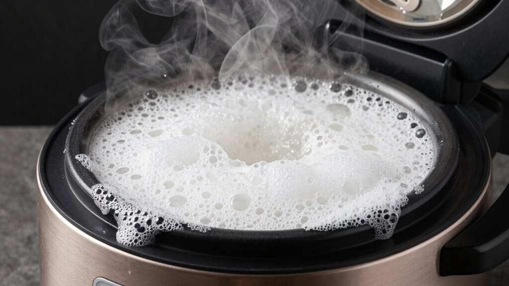 To prevent foam and spillovers, you can take simple, proactive steps before and during cooking. Start with proper cooking techniques, like rinsing rice thoroughly to remove excess starch, which reduces foam formation. Keep an eye on your appliance maintenance; regularly cleaning your rice cooker prevents buildup that can worsen spillovers. Use the following table to guide your prevention strategy: