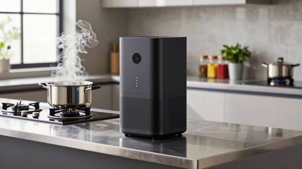 Choosing the right air purifier is like finding the perfect key to access fresh, odor-free air in your home. With options under $500, you can tame cooking smells without breaking the bank. Think of these purifiers as your home’s breath of fresh air—quiet heroes battling odors behind the scenes. So, pick the one that fits your space, and let your kitchen breathe easy, turning every meal into a fragrant delight.