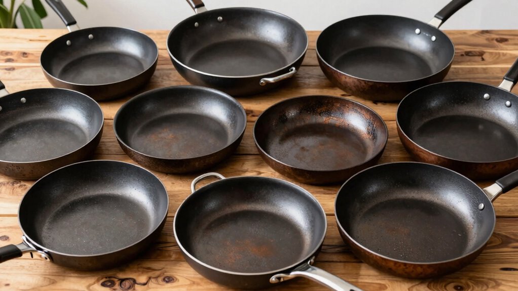 Choosing the right carbon steel pan set is like selecting the perfect brush for a masterpiece—each one adds its unique stroke to your cooking. With options that boast naturally seasoned surfaces, you’ll find a trusty partner for years of flavorful creations. Trust your instincts, consider your needs, and soon your kitchen will be a gallery of sizzling, seasoned wonders. After all, the right pan turns every meal into a work of art.