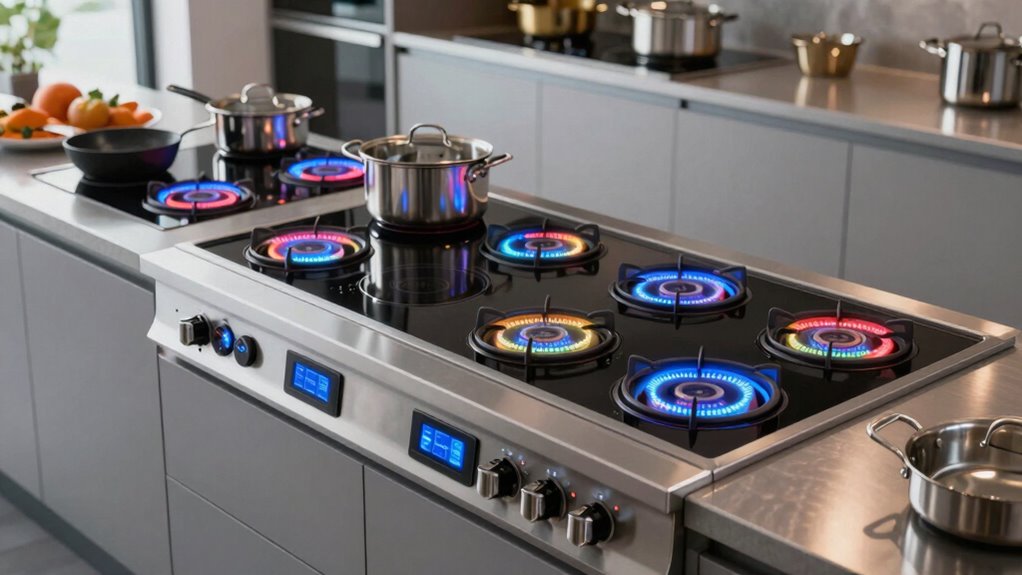 Commercial induction burners are incredibly energy-efficient for daily family use. They heat up quickly and transfer energy directly to cookware, minimizing waste. I’ve noticed they use less electricity compared to traditional stoves, which saves on your utility bills. Plus, because they cool down fast when not in use, they’re safer and reduce energy consumption overall. If you’re looking to cut costs and be eco-friendly, induction burners are a smart choice.