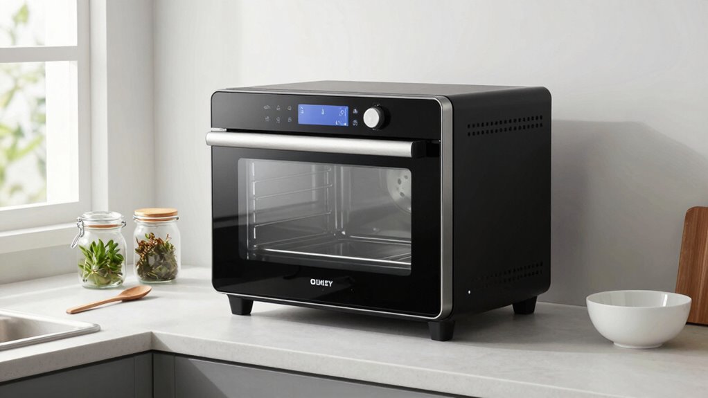 These ovens are surprisingly quiet during operation, often comparable to a gentle hum or soft buzz. I find that they’re not disruptive, even when I’m working nearby. Most models use advanced insulation and quiet fans to minimize noise, making them perfect for small kitchens where space is tight. If noise level is a concern, I recommend checking specific product reviews, but overall, they tend to operate quite quietly.