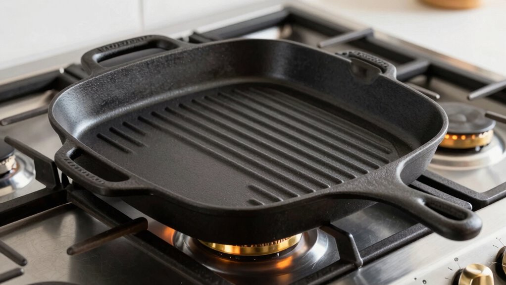 Reversible cast iron griddles offer the flexibility to switch between different cooking styles with ease, thanks to their dual surface options. The flat side is perfect for pancakes, eggs, and sandwiches, providing a gentle, even cooking surface. Meanwhile, the ridged, grill-like side is ideal for searing meats, vegetables, and seafood, giving those attractive grill marks and enhanced flavor. When choosing a griddle, consider how the surface types align with your cooking needs. A well-designed reversible surface allows for seamless progression between styles, saving you time and extra cookware. Both surfaces should promote even heat distribution, especially since cast iron excels at holding and spreading heat across both sides. This versatility makes a reversible griddle a valuable addition to any gas stove setup.