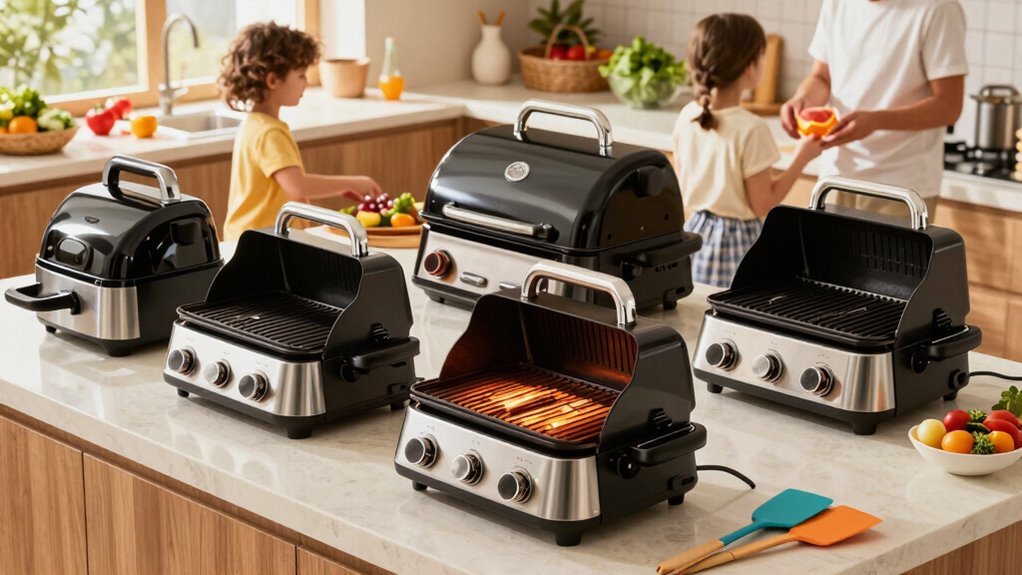 If you’re searching for the 15 best smokeless indoor grills for busy families in 2026, I’ve got you covered. These models offer versatile cooking options, quick heating, and safety features like auto shut-off, making meal prep easier and healthier. They minimize smoke with advanced ventilation and grease management to keep your kitchen clean. If you keep browsing, you’ll find detailed insights on each grill’s features to help you choose the perfect fit for your family.